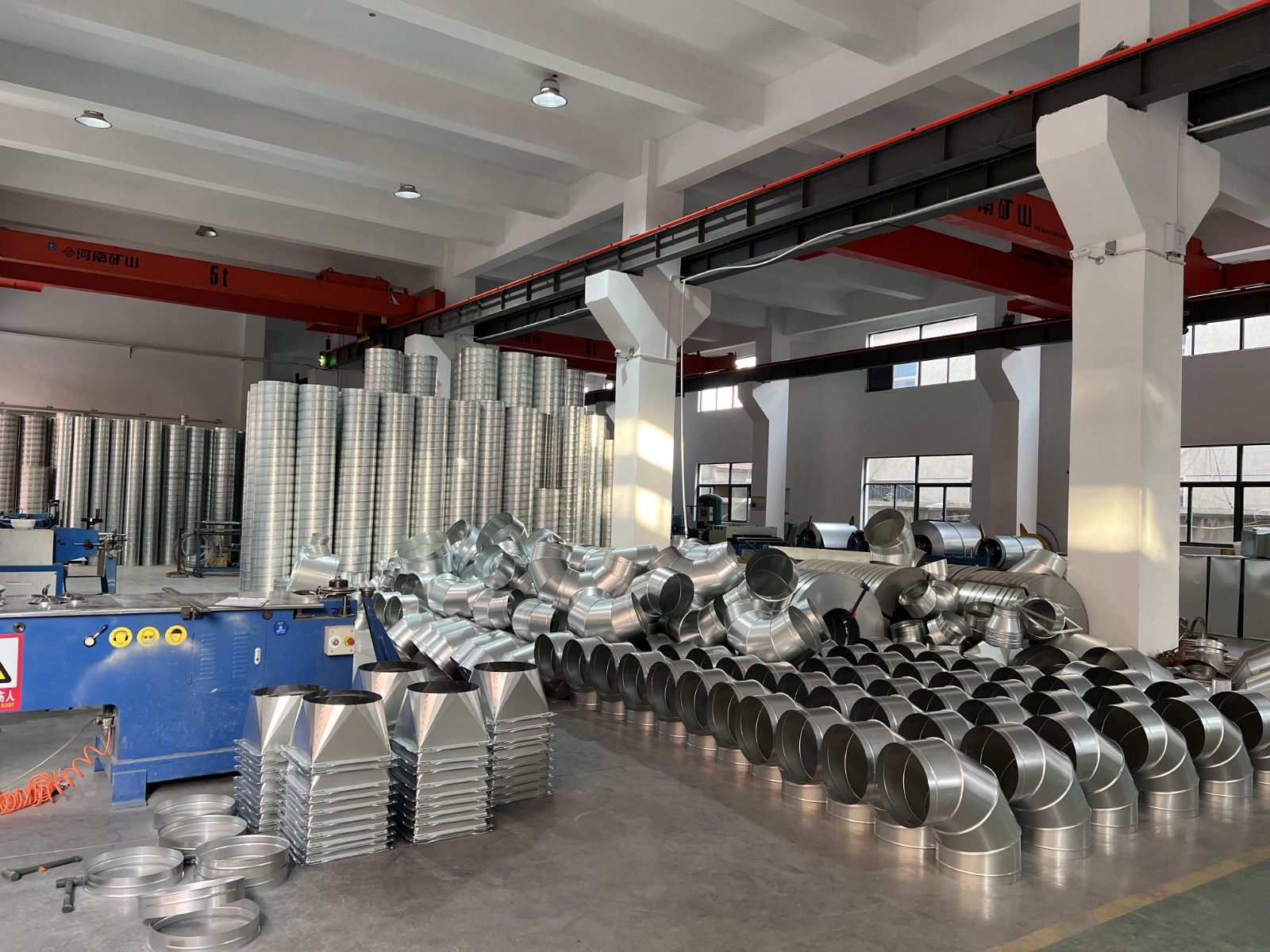 2、通系統(tǒng):送新風(fēng)和排氣,將有害氣體排出室外,把室外新鮮空氣送至室內(nèi)。一般而言,通風(fēng)系統(tǒng)的流量都很大,因此要求使用阻力較小的空氣輸送管道,以節(jié)省造價(jià)和運(yùn)行費(fèi)用——螺旋風(fēng)管就適用。一般情況下使用鍍鋅鐵管,有腐蝕性及特別潮濕的場所使用不銹鋼管。